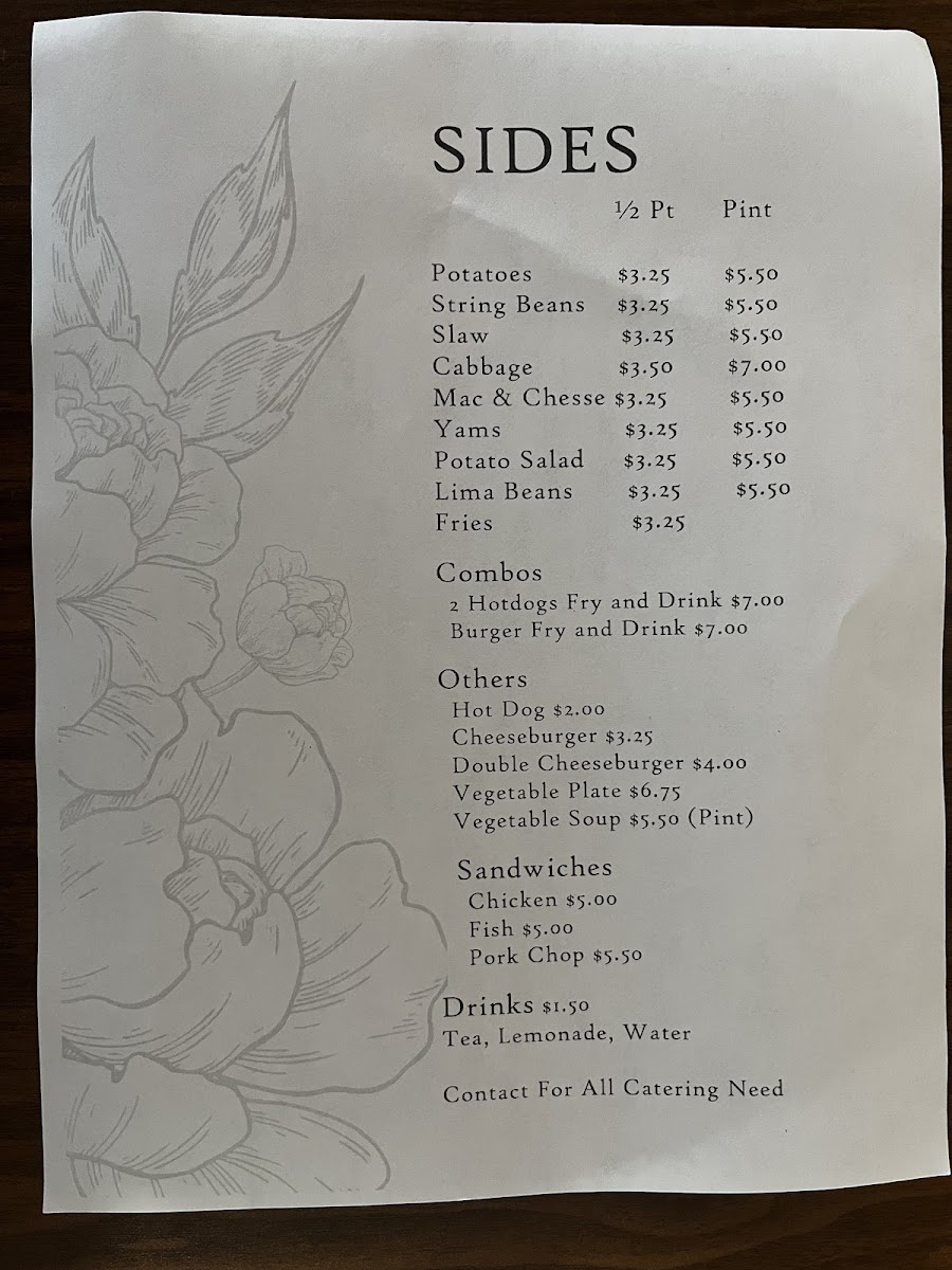 The Best Café Menu at 102 W Railroad St, Walstonburg, NC, offers a warm, comforting selection of dishes that cater to a wide range of tastes. For those seeking classic comfort food, the Sides section is a must-try, featuring hearty options like Potatoes, String Beans, Slaw, Cabbage, and Mac & Cheese. These sides are perfect for accompanying any meal, adding a familiar, satisfying touch to your dining experience. The Combos section is a great choice for a quick, filling meal, with options like the 2 Hotdogs with Fries and a Drink or the Burger with Fries and a Drink. These combo meals are ideal for those on the go, offering simplicity without compromising on flavor.